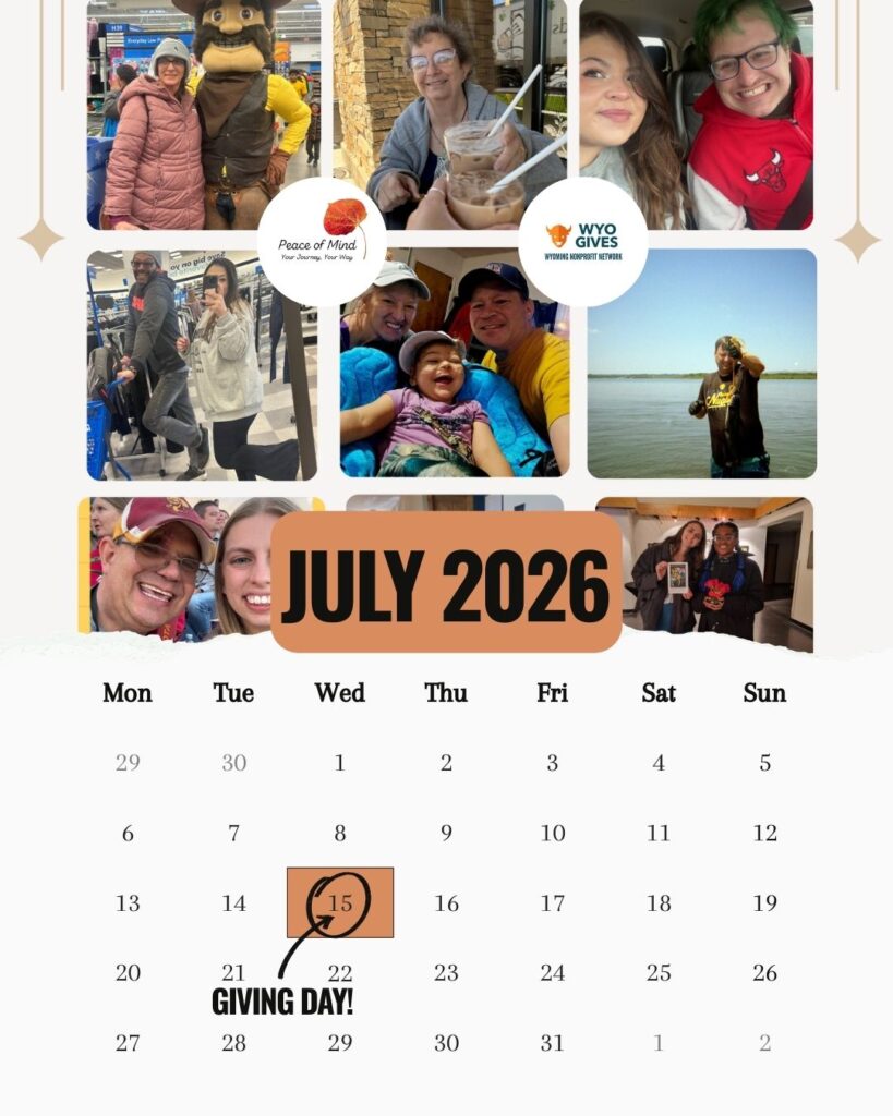Come see us in-person at our new office location in the Laramie Civic Center Room 166! We love putting a face to a name and personally thanking you for your donation. Fill out checks to Peace of Mind: Your Journey, Your Way.